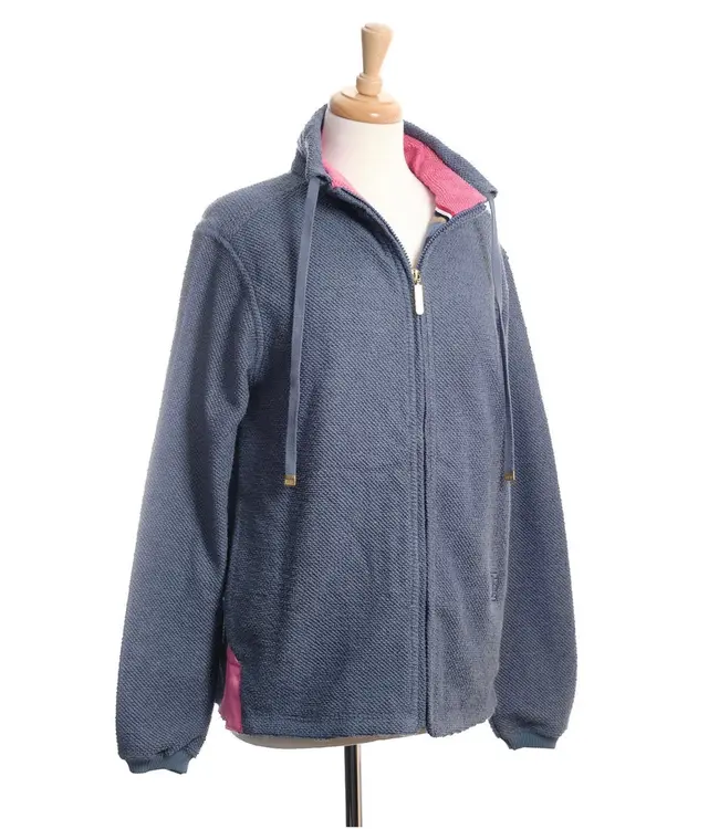 A honeycomb jacket with a full zip and pockets. Fully lined body with contrasting stripes with inside pockets and contrasting honeycomb interfacing inside the collar. There are two pockets to the side and the cut is not fitted making this an easy to wear garment for all occasions. A grade 100 per cent cotton, pre-washed and machine washable. A great addition to the wardrobe.