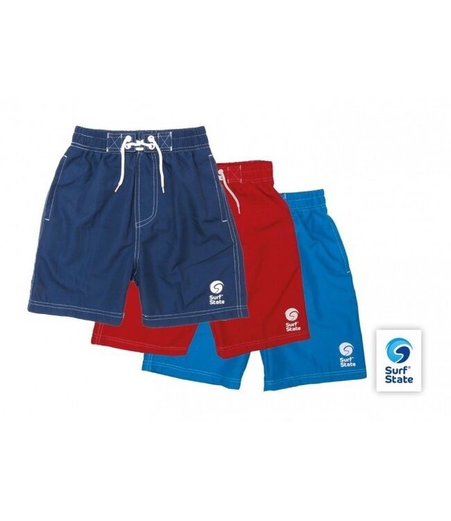 Mens Surf State mesh lined swim shorts.2 leg pockets and 1 back pocket.Made from 100% Polyester.Elasticated waist with draw string.Available in either Red, Light Blue or Navy in the following sizes: