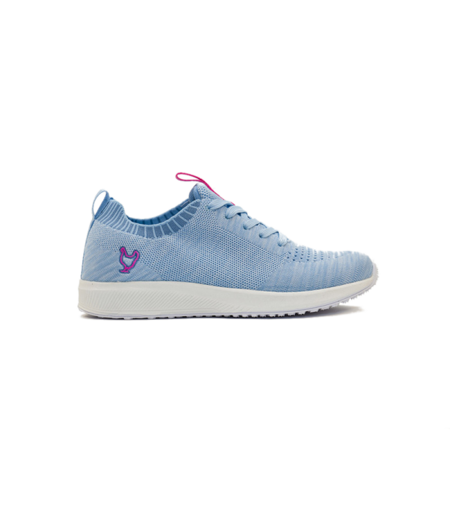 Trainer made of soft, one-piece mesh. The laces are decorative, and the elastic collar makes it easy to put on.
